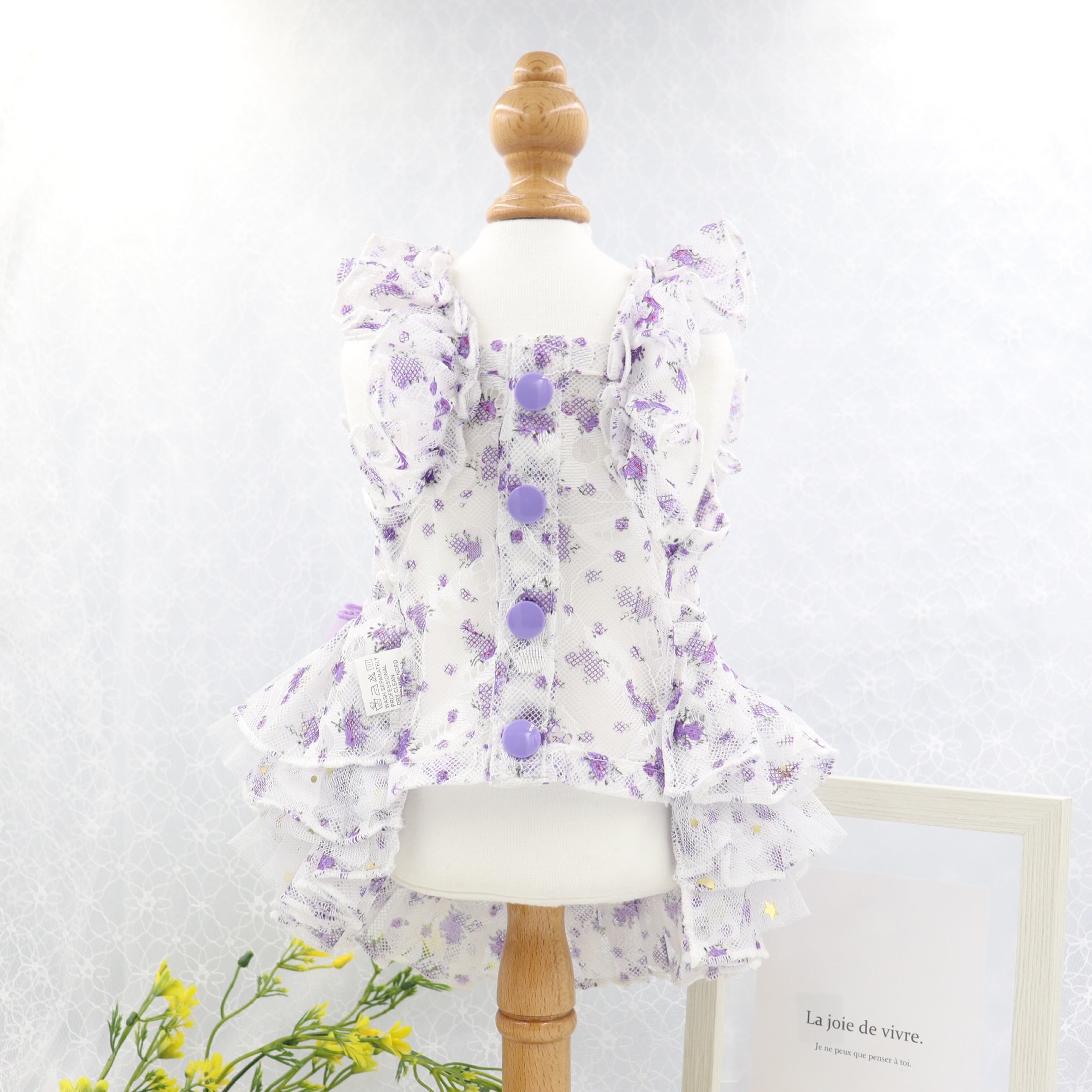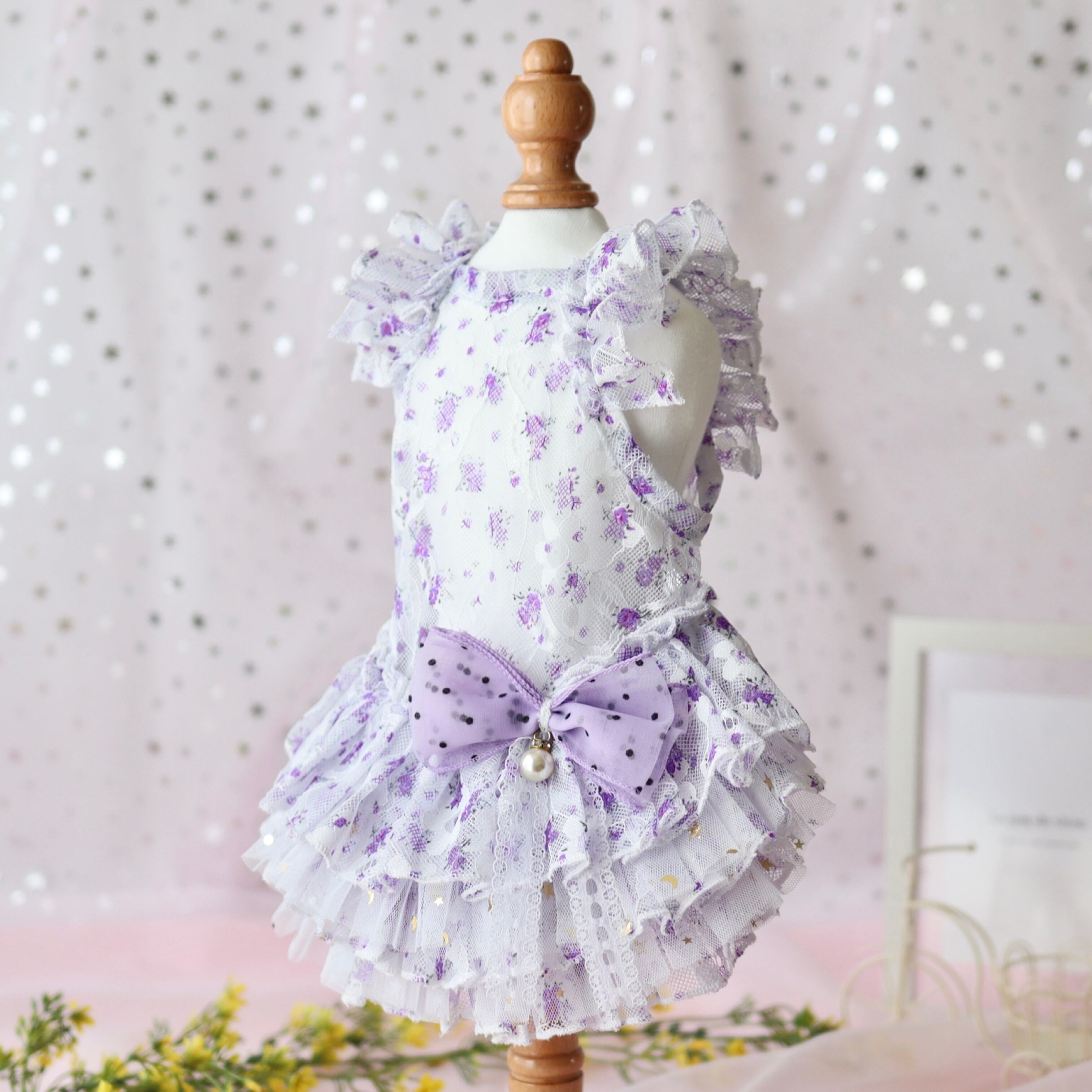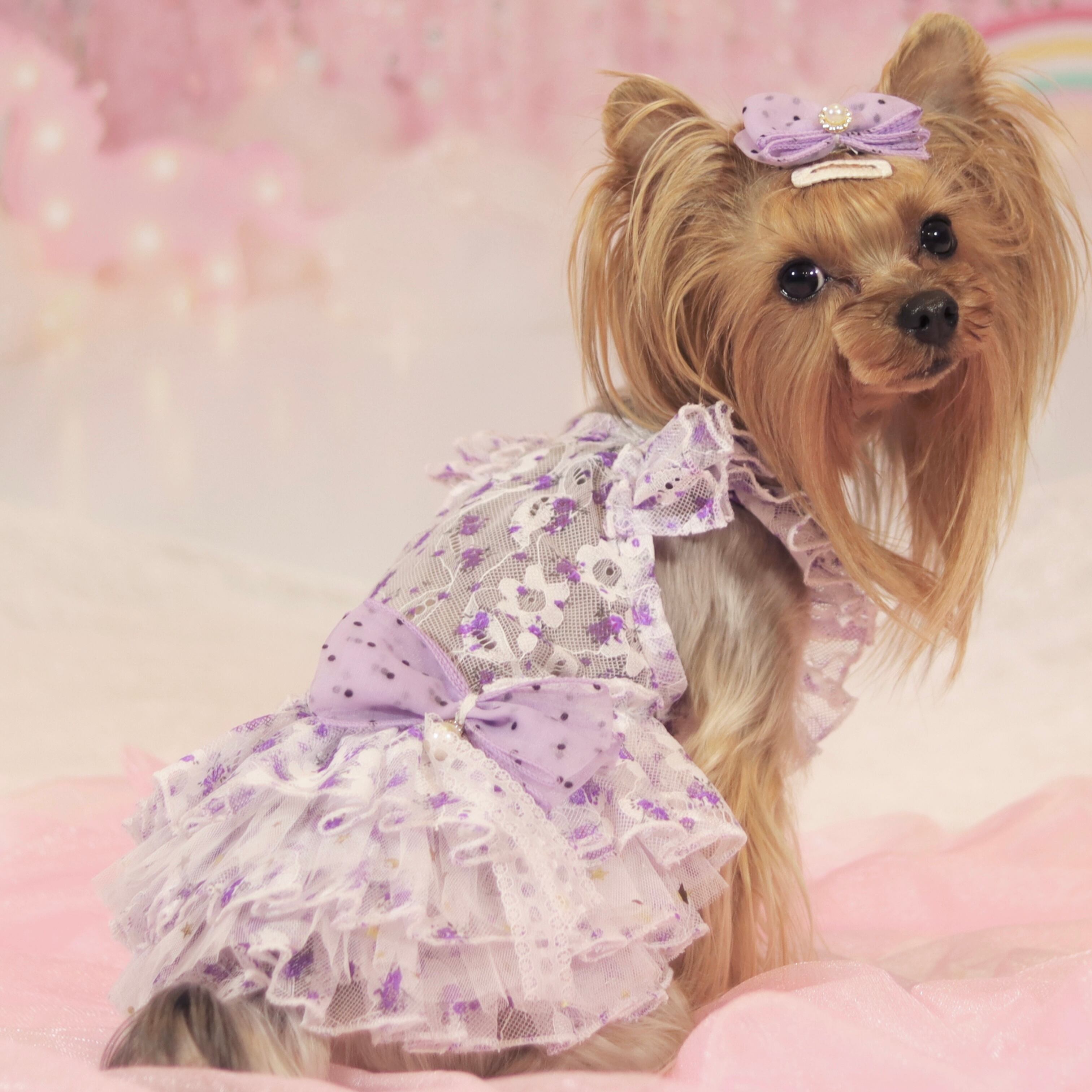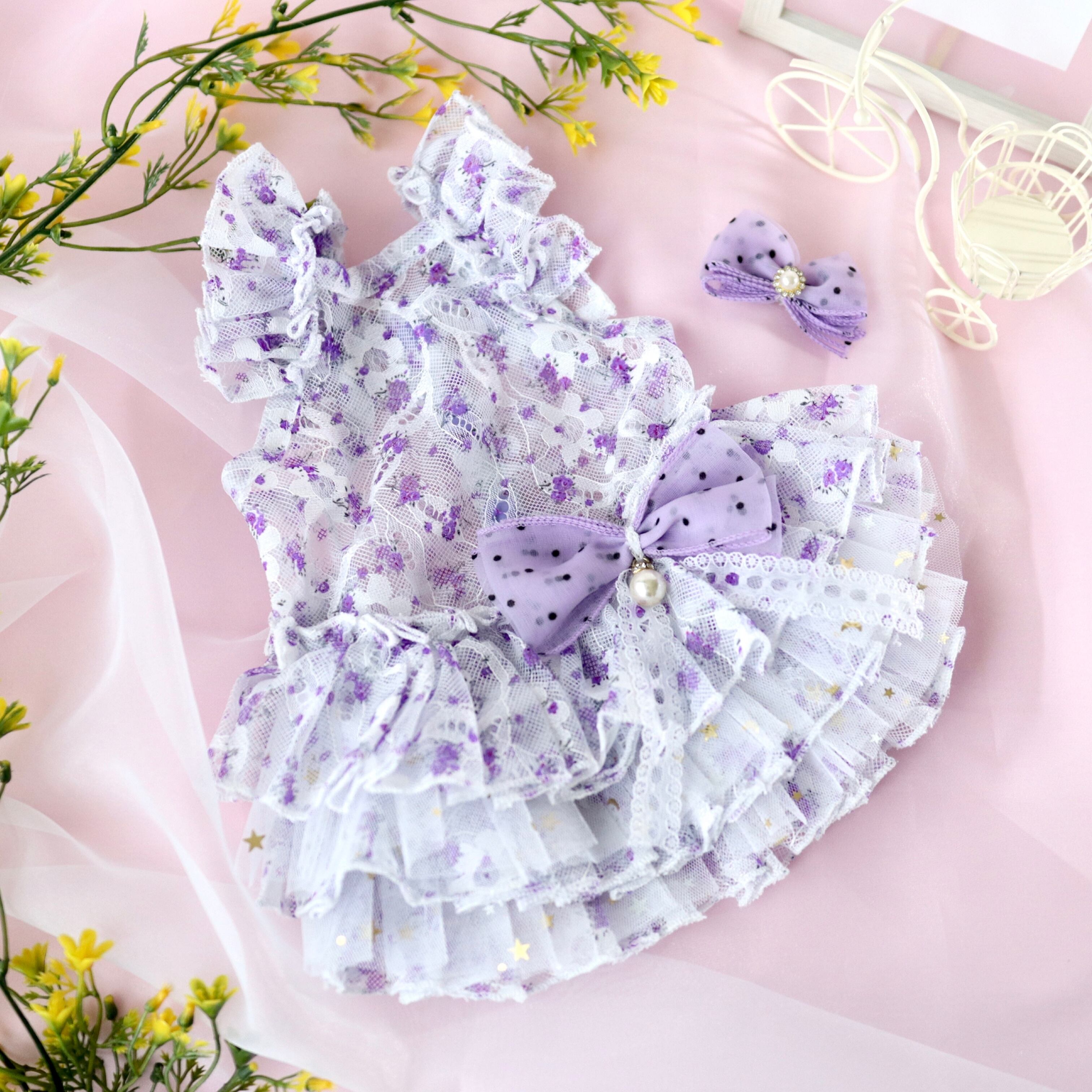 また5段重ねになったスカート部分は、星柄のパープルカラーのチュール生地も重ねていますので、ボリューム感もあり華やかなワンピースになってます♪