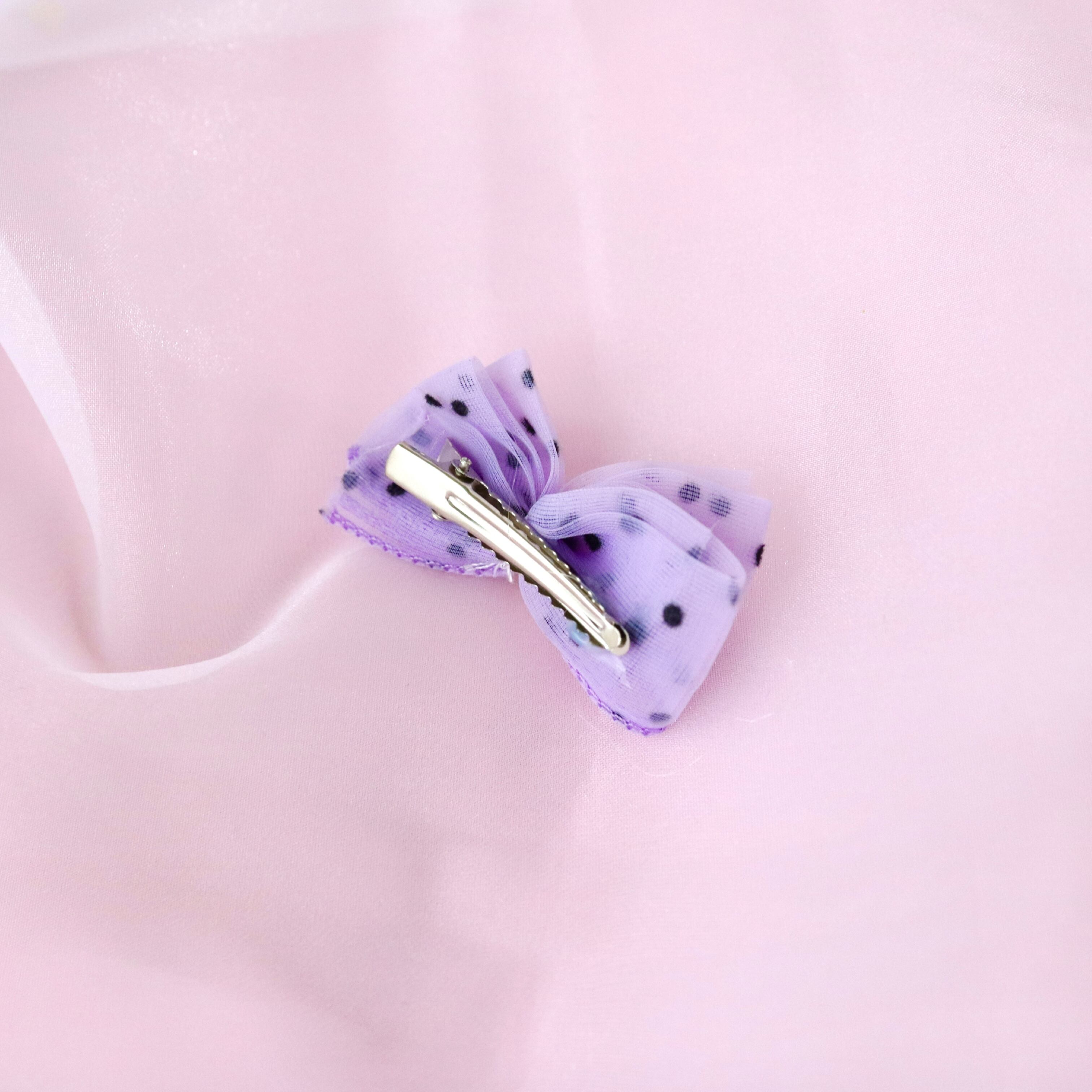 ワンピースについてるおリボンとお揃いのパープルカラーのドッド柄おリボンバレッタ付き⭐︎