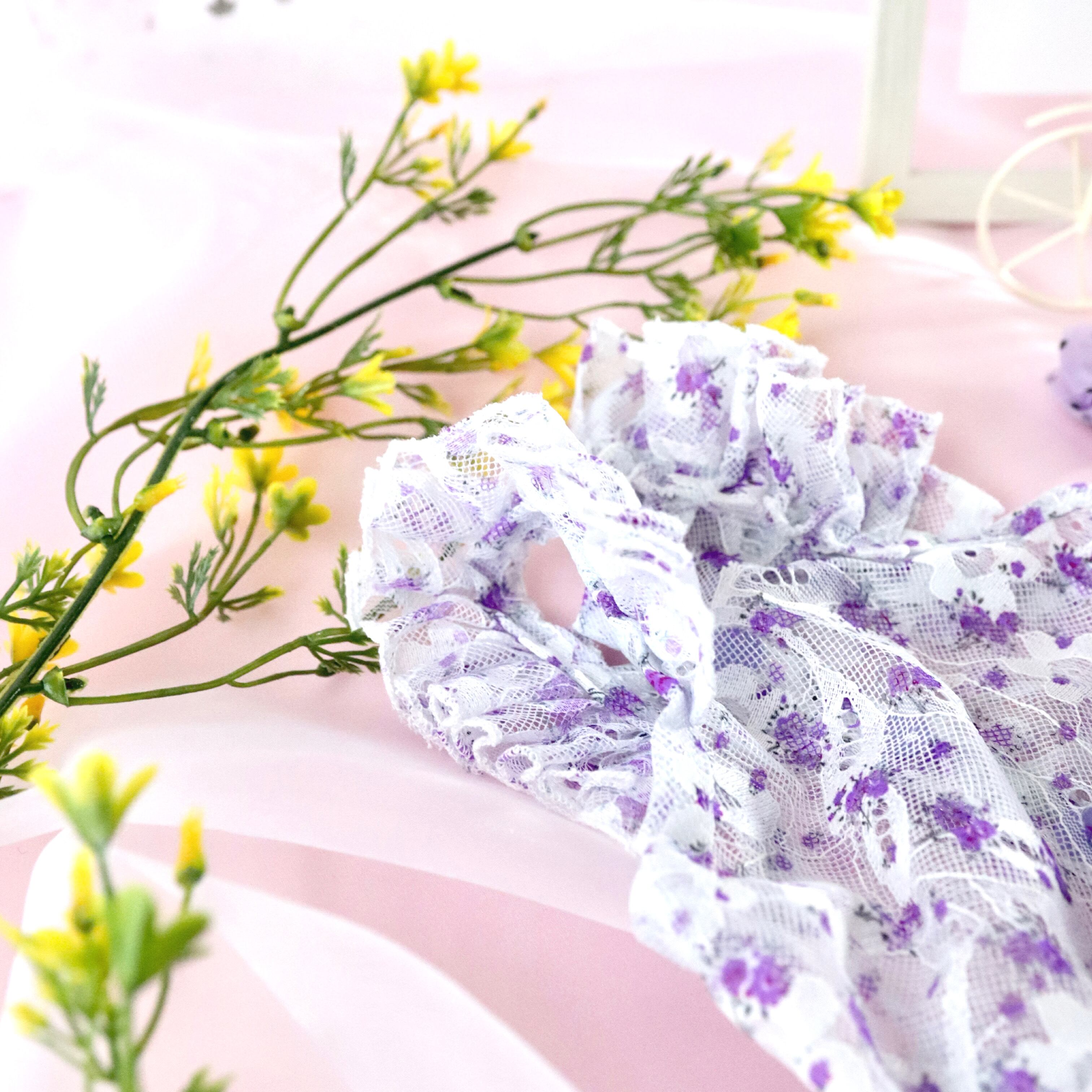 ハンドメイド作家さんによって丁寧に作られた、透け感のあるパープルカラーの小花柄がデザインされたレース生地とチュールの組み合わせがとってもかわいいサマーレースワンピースです♡