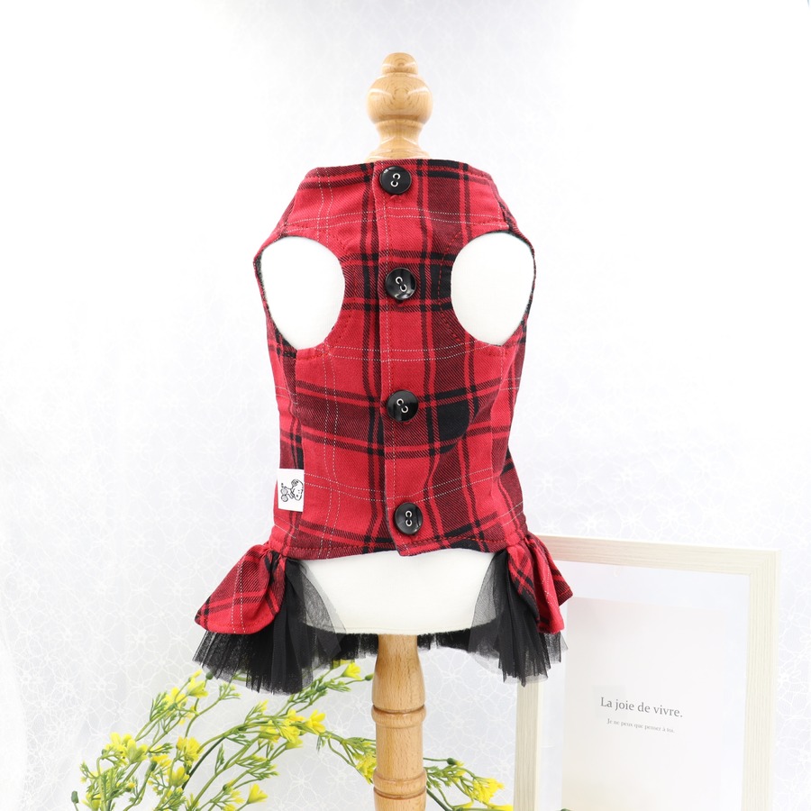 ハンドメイド作家さんによって丁寧に作られた、ブラックチュールスカートが重ね着風に見えるとってもかわいいレッドチェックワンピースが入荷しました⭐︎